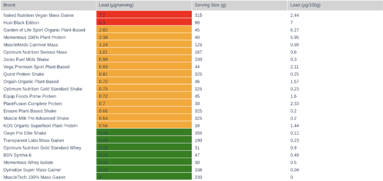 When you adjust for serving size, Naked Vegan Mass Gainer actually has less lead per gram than other powders that were listed as “safer.”
